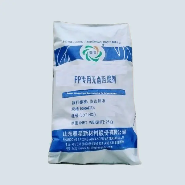 Shandong TaiXing Advanced Material Co., Ltd., was established in 1998, we are flame retardant china manufacturer and specialized in R&D and producing Environment-friendly halogen-free flame retardants including Zinc Borate 233.5(ZB2335), Ultrafine Aluminum hydroxide, Melamine Cyanurate (MCA), Aluminium Hypophosphite(AP), Ground Aluminiumhydroxid, magnesiumhydroxid (MDH), hexaphenoxycyclophosphazen (HPCP), magnesiumhydroxid, vi producerer også flammehæmmende master batch og specialiseret flammehæmmende for GF forstærket PBT, PA og TPU, Shandong Taixing Avanceret materiale Co. retardant china manufacturer and specialized in R&D and producing Environment-friendly halogen-free flame retardants including Zinc Borate 233.5(ZB2335), Ultrafine Aluminum hydroxide, Melamine Cyanurate (MCA), Aluminium Hypophosphite(AP), Ground Aluminum hydroxide, Magnesium Hydroxide(MDH), Hexaphenoxycyclophosphazen (HPCP), magnesiumhydroxid, producerer vi også flammehæmmende masterbatch og specialiseret flammehæmmende for GF -forstærket PBT, PA og TPU.
